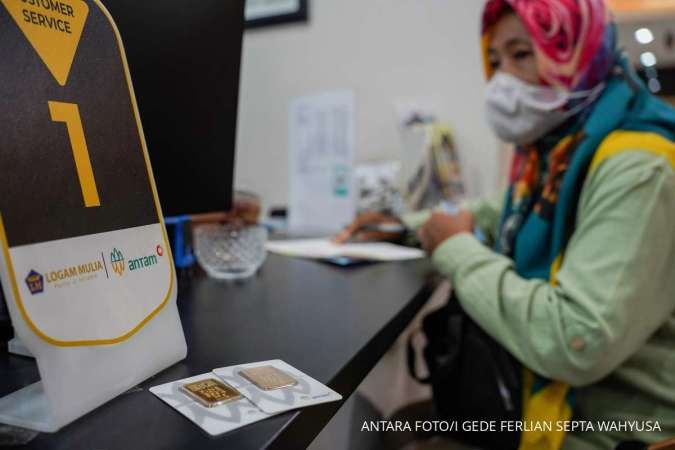 Harga jual emas Antam logam mulia berukuran 5 gram mengalami kenaikan sebesar Rp 75.000 pada hari ini.